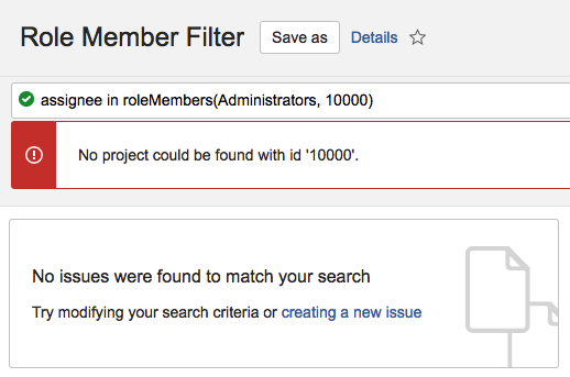 atlas-package command.To make the function truly production ready, your RoleFunction also needs to implement ClauseSanitisingJqlFunction. A saved JQL search (filter) can be shared with multiple users. While this functionality is very useful, it also allows information to be leaked. For example, let's say you have a filter that contains assignee in roleMembers(Administrators, Proj) and you share the filter with Janice who cannot see Proj. The search will not return any results, however, Janice will know that a project called Proj exists even though she does not have permission to see it. A JQL function that can expose sensitive information should also implement the optional ClauseSanitisingJqlFunction interface.