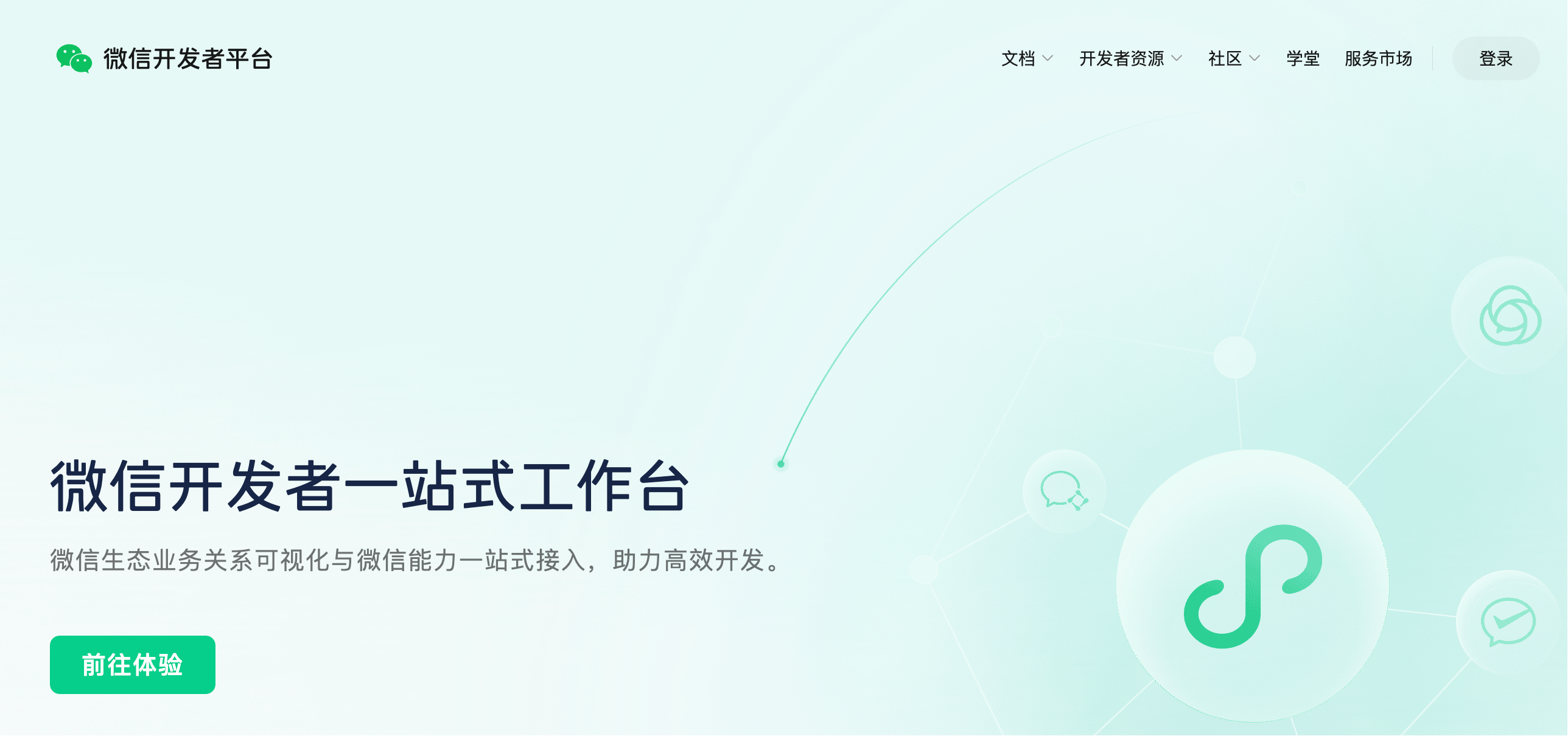 1、访问微信开发者平台,点击「前往体验」(如果已登录,则点击「前往控制台」)