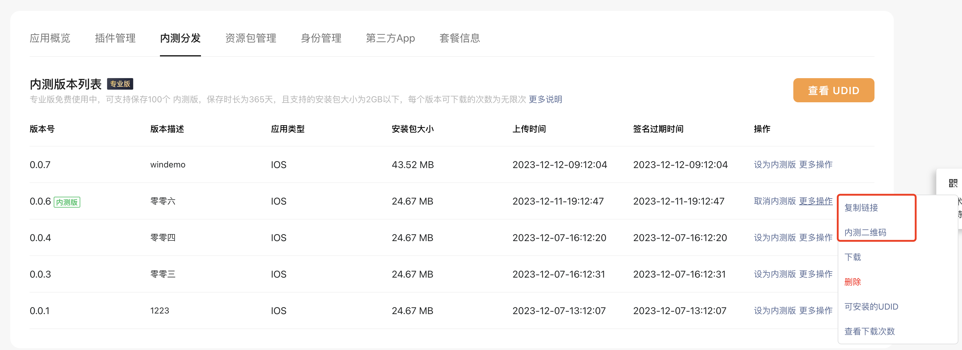 - 开发者可前往多端应用控制台 - 多端应用详情 - 内测分发,查看已上传的内测版 IPA