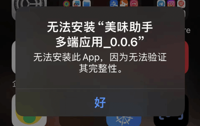 - 将步骤 2.4 生成的内测二维码发送给开发者扫码访问,如果测试者的手机的 UDID 尚未添加到安装包中,则下载完 IPA 后也无法安装,将出现无法验证完整性的报错
