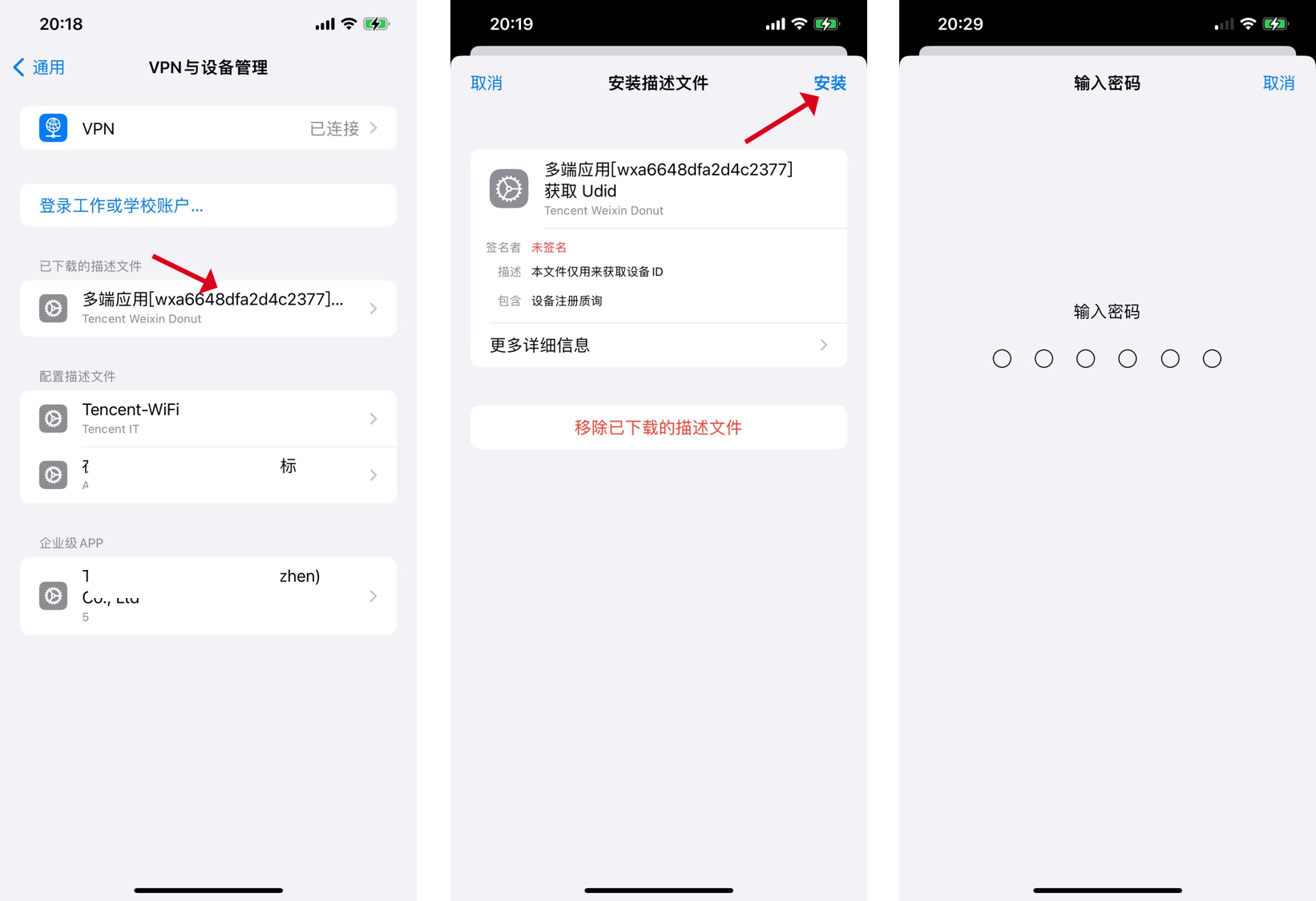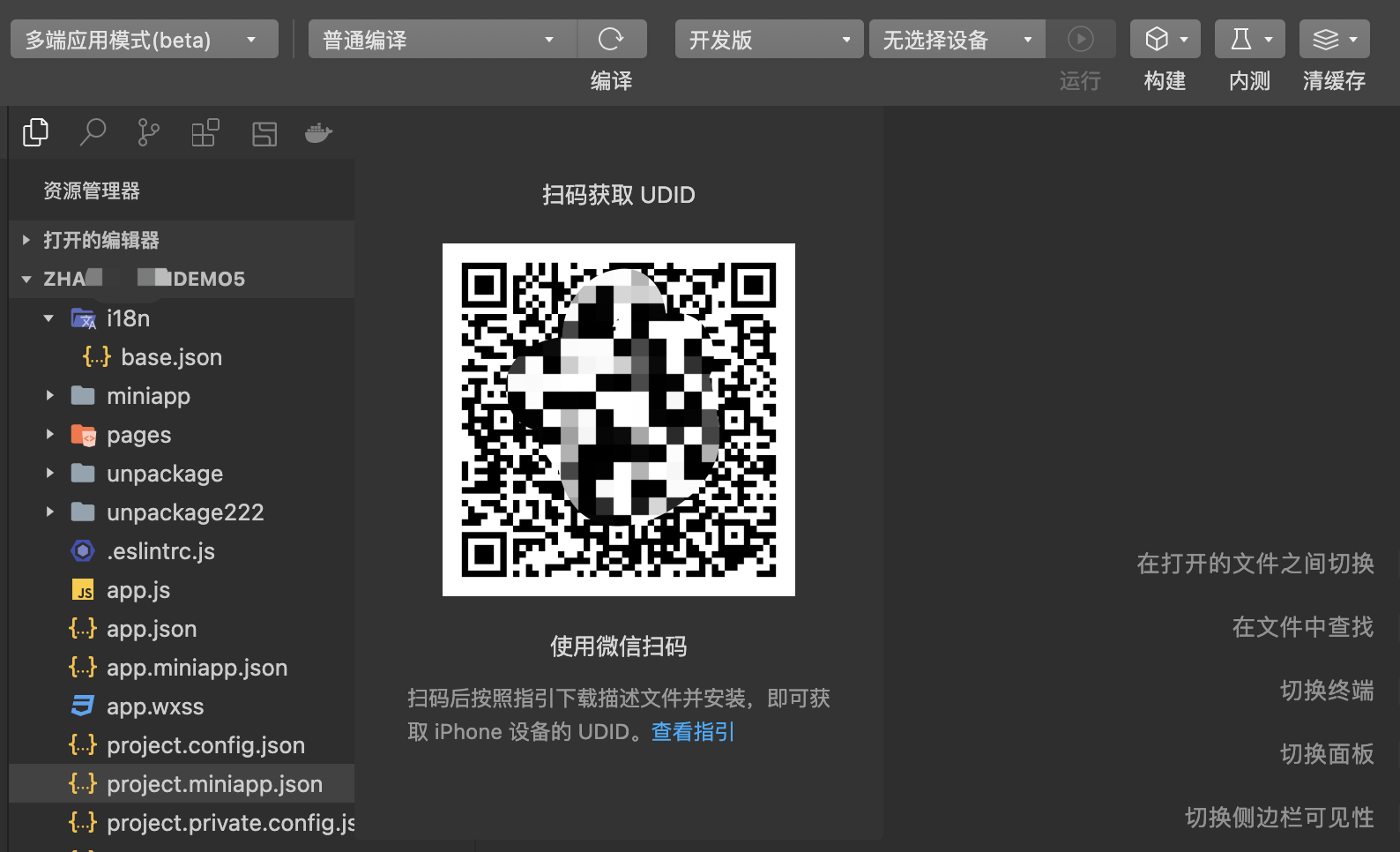 - 使用微信扫码获取本机的 UDID,并且将 UDID 发送给多端应用的开发者