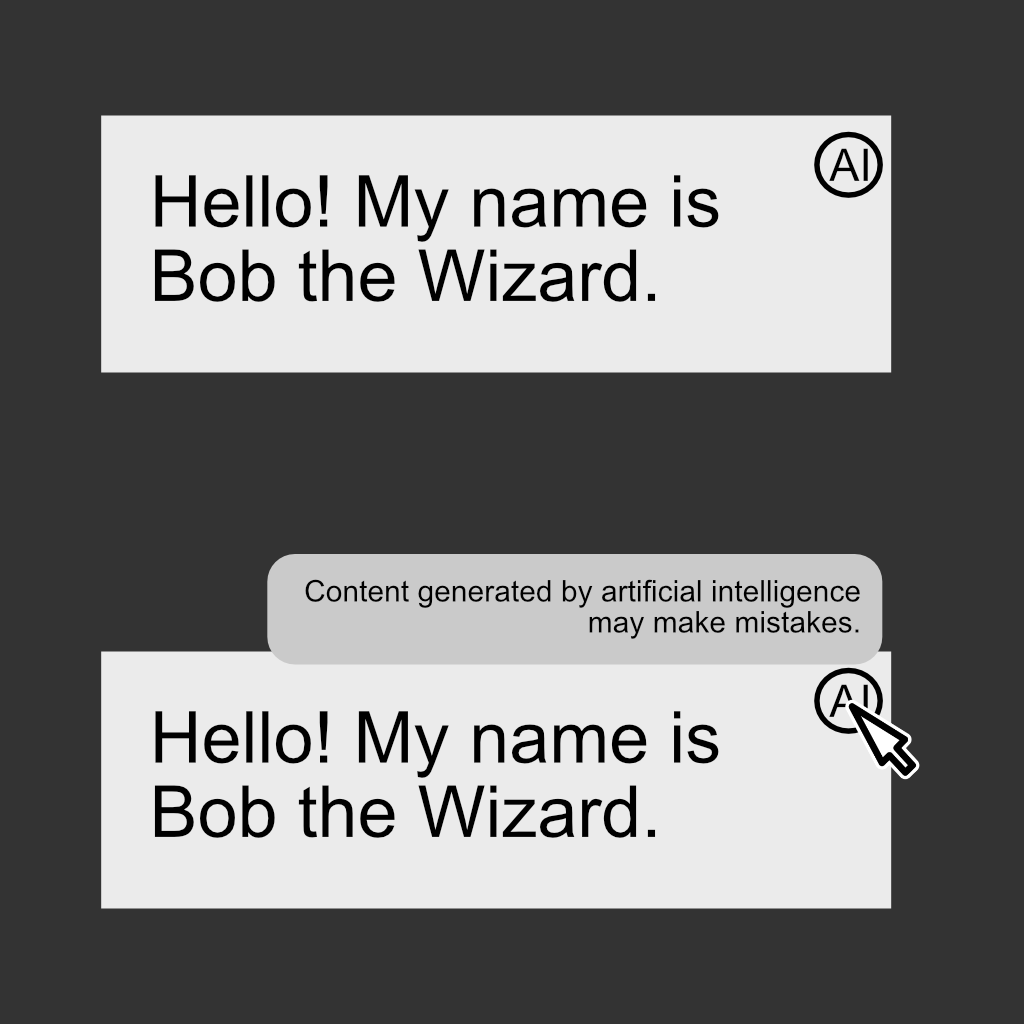 Can we at least separate it from the text and make it a little icon like “AI” that when clicked/hovered over displays more info, rather than showing a full immersion-breaking notice the whole time?