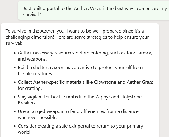 My brain kinda melted while typing that. This AI stuff getting to my head. But I think you should have said “Nether” instead of “aether” because nether is more used saying in the official Minecraft