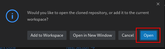Let’s clone our project into our workspace :