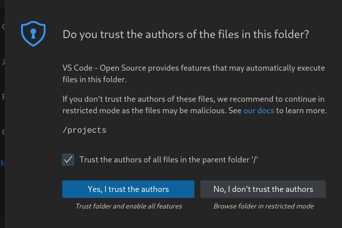 /projects dir, then click the button OK