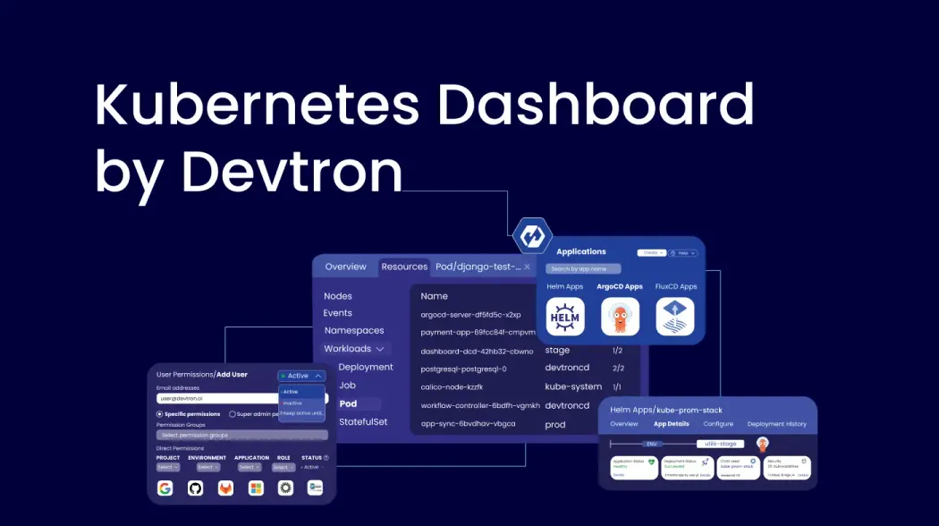 In today's rapidly evolving cloud-native landscape, managing Kubernetes at scale using a CLI tool become cumbersome and error-prone. The complexities of the CLI tools can be eliminated through an intuitive UI that provides complete visibility and operational efficiency. The Devtron’s Kubernetes Dashboard stands out by providing unified visibility across multiple Kubernetes clusters and their workloads. Features like robust RBAC, manifest editing, configuration management, configuration drift handling, and deployment history help teams manage their Kubernetes infrastructure more efficiently. Moreover, capabilities like Helm application deployment and complete visibility for ArgoCD and FluxCD allow teams to manage their Kubernetes application smoothly. Whether you're scaling your Kubernetes operations or seeking to improve developer productivity, Devtron's Modern Kubernetes Dashboard offers a comprehensive solution.