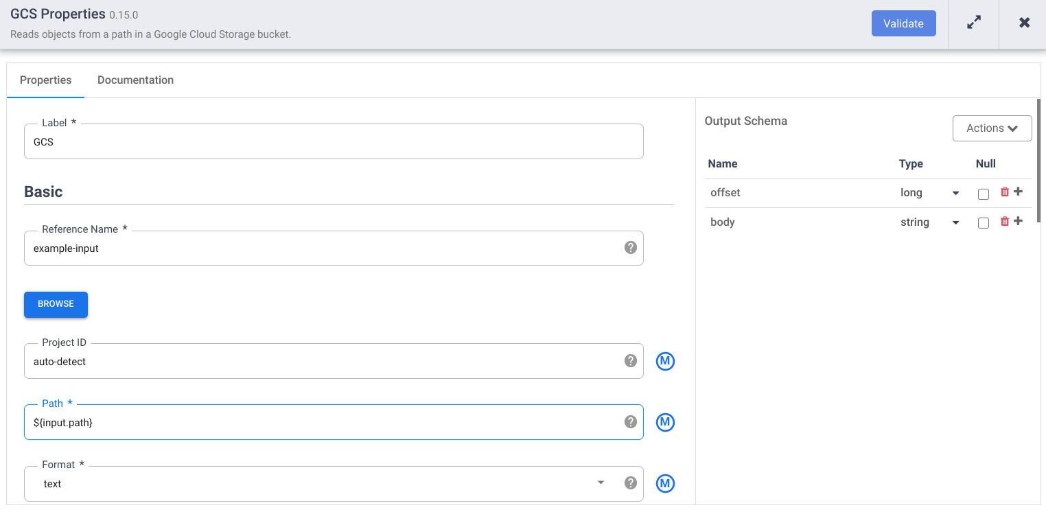 . This macro controls what the Cloud Storage input path will be in the different pipeline runs.In the right Output Schema panel, remove the offset field from the output schema by clicking the trash icon in the offset field row.