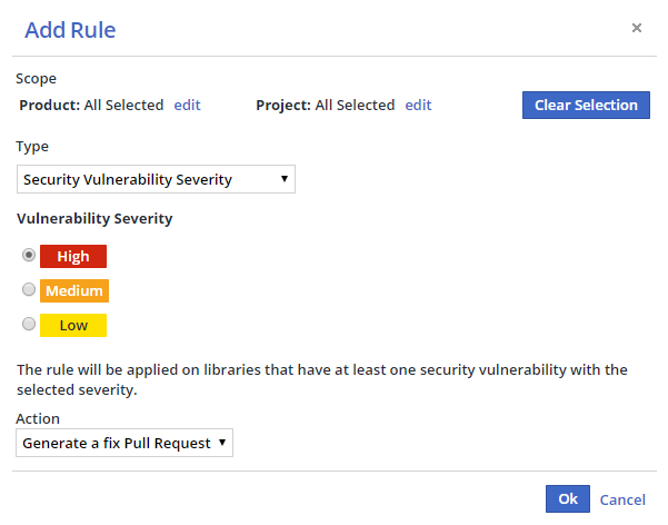 Custom workflow rules - Open fix Pull Requests based on vulnerability severity or CVSS score.