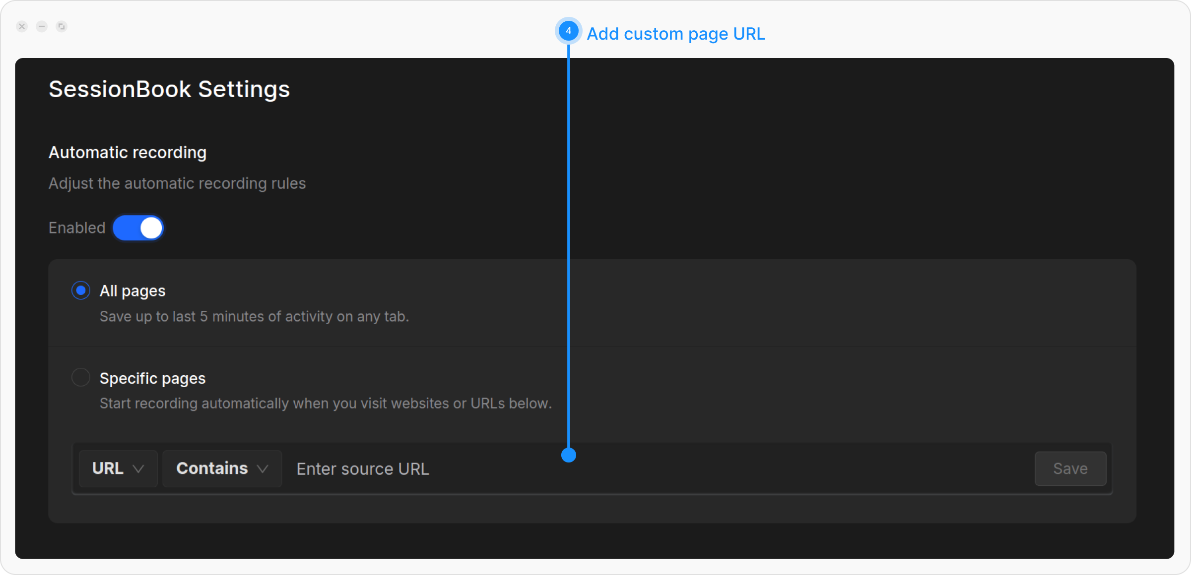 - All Pages: Record sessions on all the websites you visit.