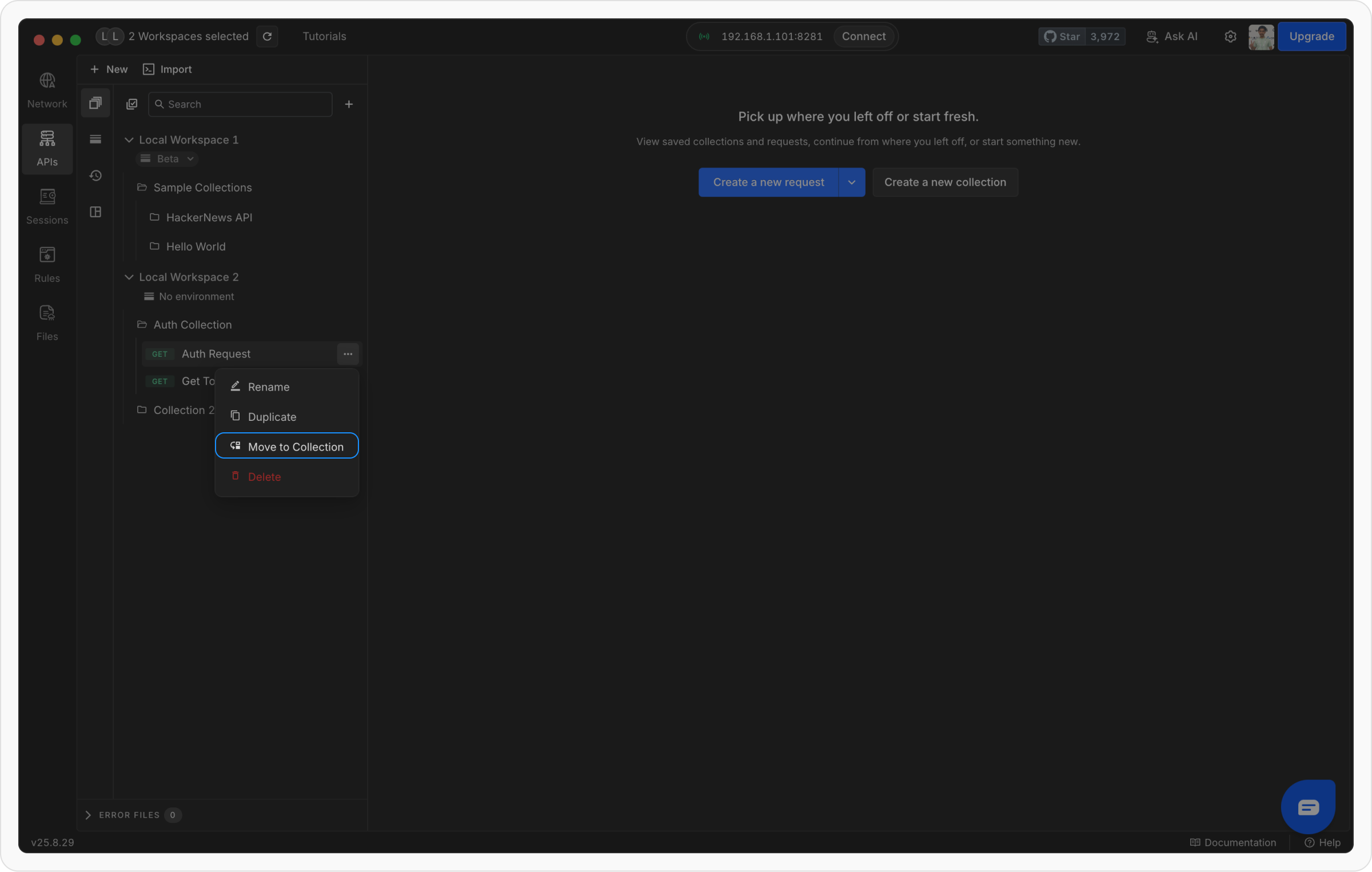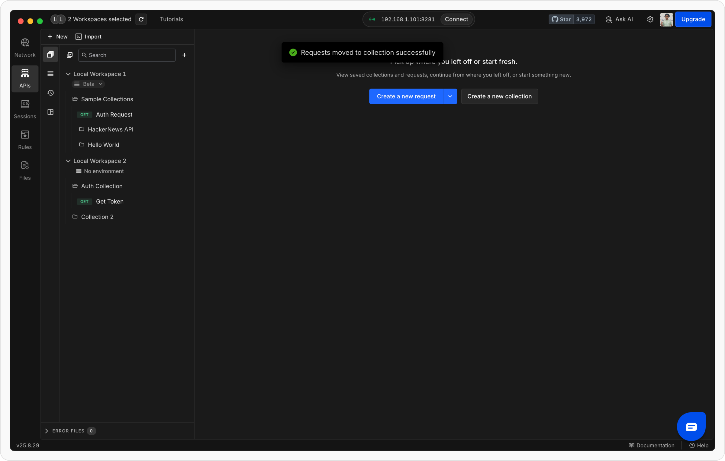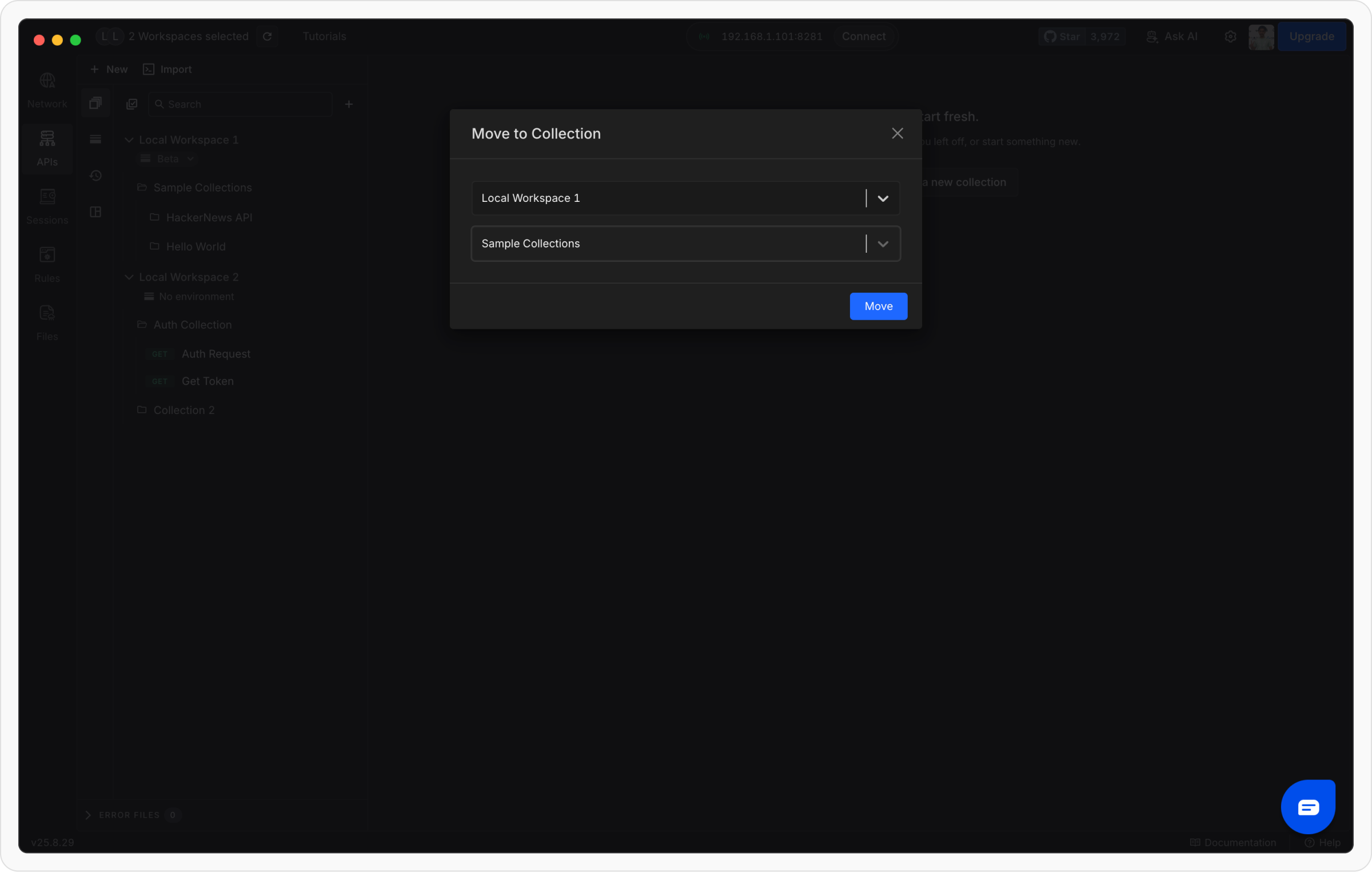 Click Move to complete the action. The request will now appear in the selected workspace and collection.