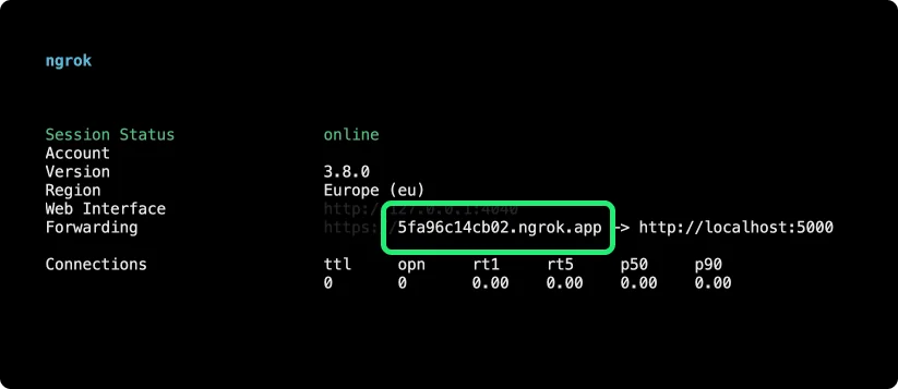 Twilio requires a publicly accessible URL. We’ll use ngrok to forward the local port of our application and expose it as a public URL.