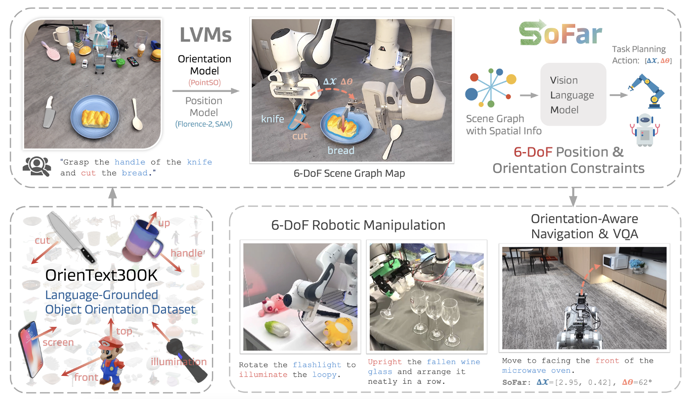 | SoFar: Language-Grounded Orientation Bridges Spatial Reasoning and Object Manipulation |