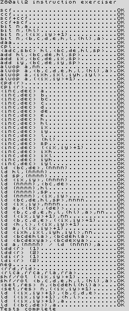 This set of programs is intended to help the emulator authors to reach the desired level of the CPU emulation authenticity. Each of the included programs performs an exhaustive computation using each of the tested Z80 instructions, compares the results with values obtained from a real Sinclair ZX Spectrum 48K with Zilog Z80 CPU, and reports any deviations detected.