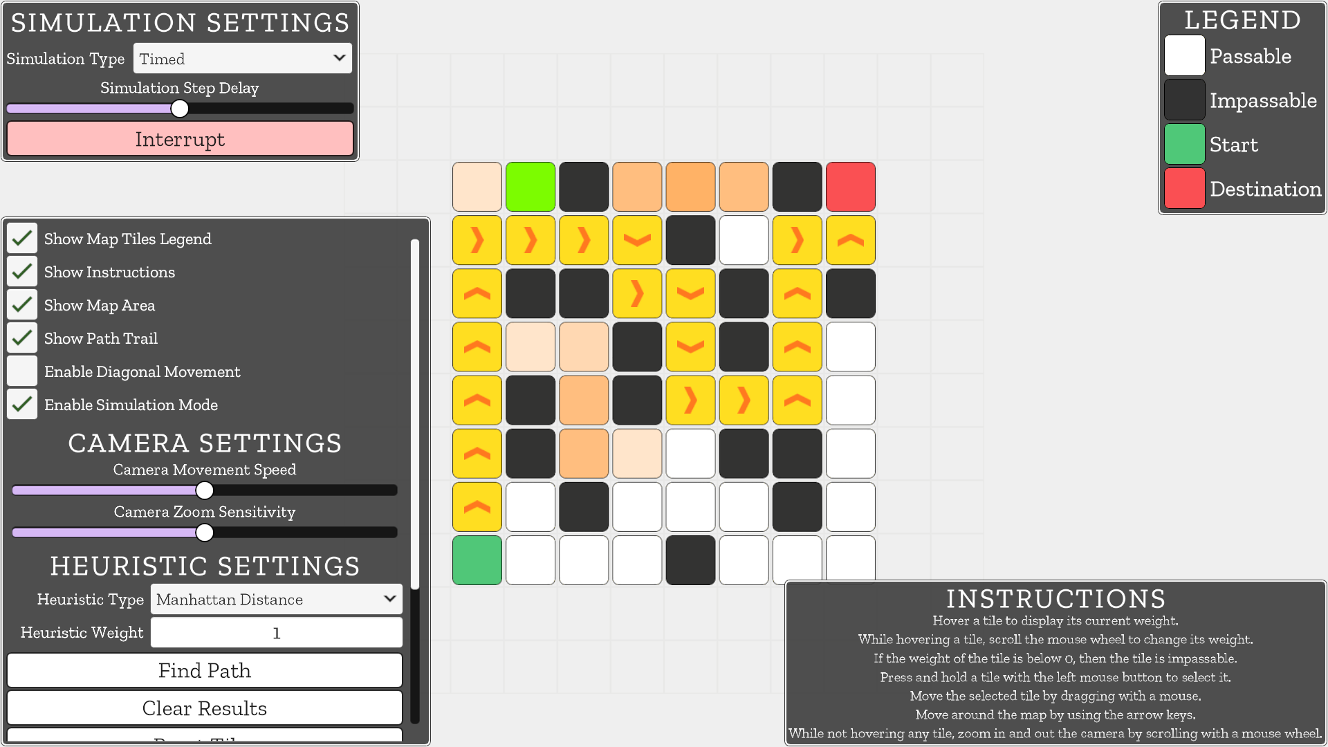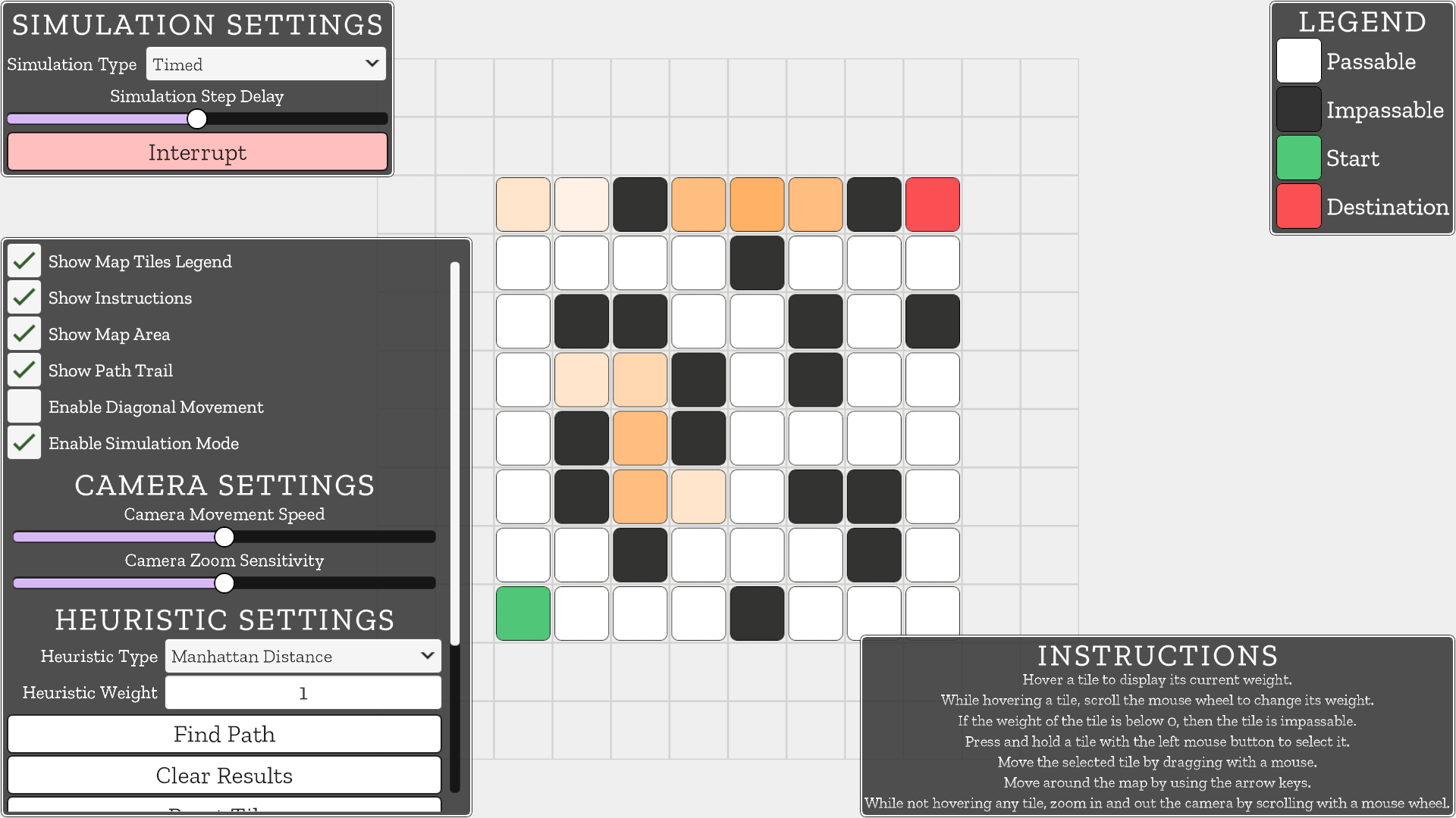 • Changing tiles type (passable/impassable) depending on their weight (if it is below 0, then the tile is impassable)