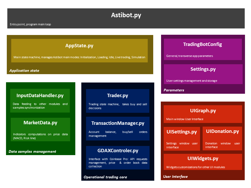 I think current PASTIL version could be a good starting point to implement more sophisticated strategies. To understand the general software breakdown, a diagram is worth thousand words. Top modules call services from the modules below.