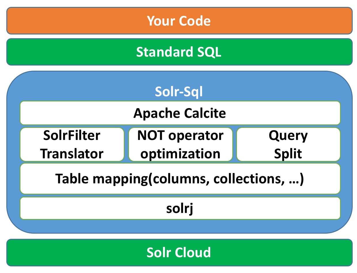 So, if you are a Java developer, do not hesitate to choose solr-sql, because it is easy to be referenced by Java code. Also the test cases are written in Java(see https://github.com/bluejoe2008/solr-sql/blob/master/src/java/test/SolrSqlQueryTest.java).
