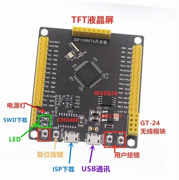 使用STM32F103RCT6最小系统板。实际上使用C8T6完全可以,这里只是手里这块板闲置,而且板载了SPI的屏幕接口。