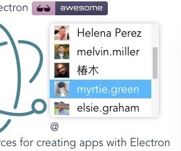 <!-- vue1-at for vue@1.x --> <template slot="item"> <img data-src="item.avatar"> <span data-text="item.name"></span> </template>This gives you the option of changing the style of inserted tagged items. It is only supported for ContentEditable version, not Textarea.