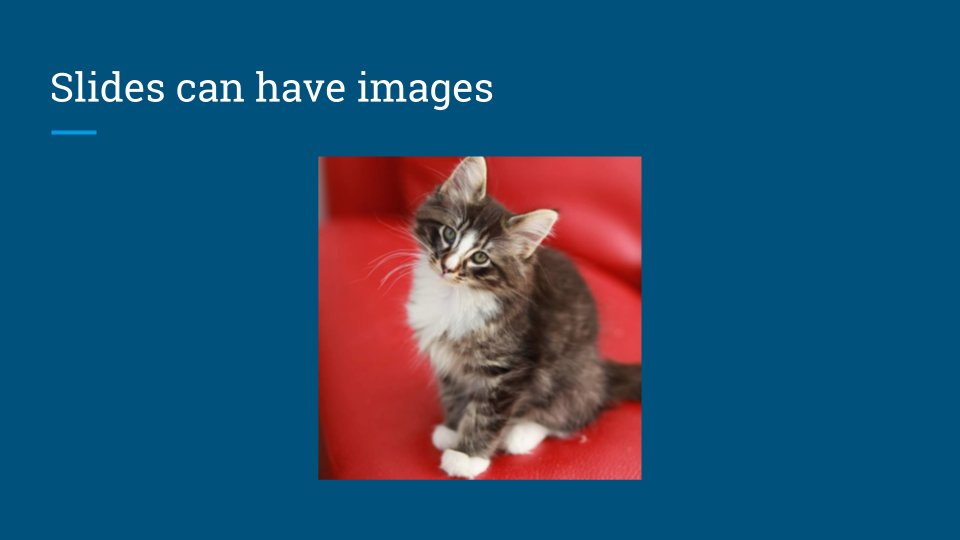 While it does not yet produce stunningly beautiful decks, you are encouraged to use this tool for quickly prototyping presentations.