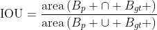 IOU is given by the overlapping area between the predicted bounding box and the ground truth bounding box divided by the area of union between them: