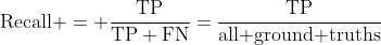 Recall is the ability of a model to find all the relevant cases (all ground truth bounding boxes). It is the percentage of true positive detected among all relevant ground truths and is given by: