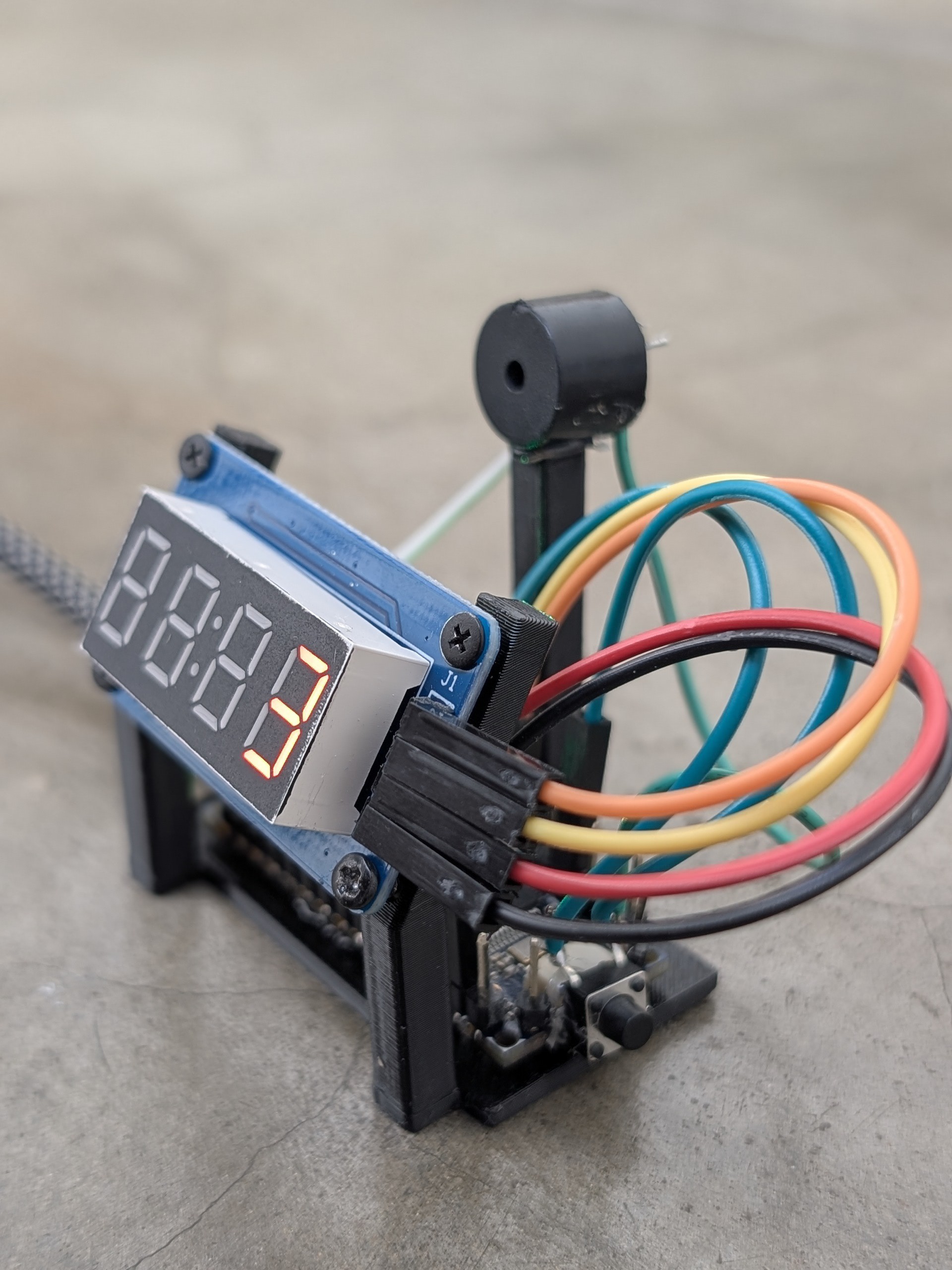 I'm fully aware that a project with exposed wires, a constant beep, and a 7-segment display could easily be mistaken for something about to explode. The real goal was to test features of the new Arduino Nano R4, like its FPU and onboard RGB LED, while contributing a fun project to the One Hertz Challenge.