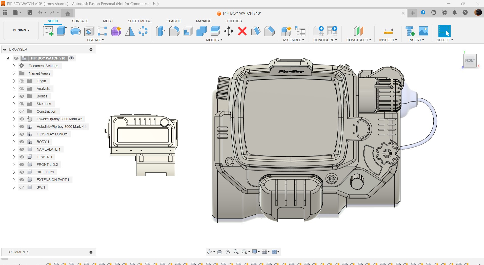 This is the Updated verssion of my previously created PIP WATCH V1 project that features a smaller GC9A01 Round display and a much smaller and different body than that of an actual PIP boy. In Version 2, we tried to model the device as close to its actual counterpart as possible, featuring the wide body design with a screen placed horizontally. The Clock funstuion remains the same in version 2; we are getting Time data from an NTP server and then it is being displayed on the screen.