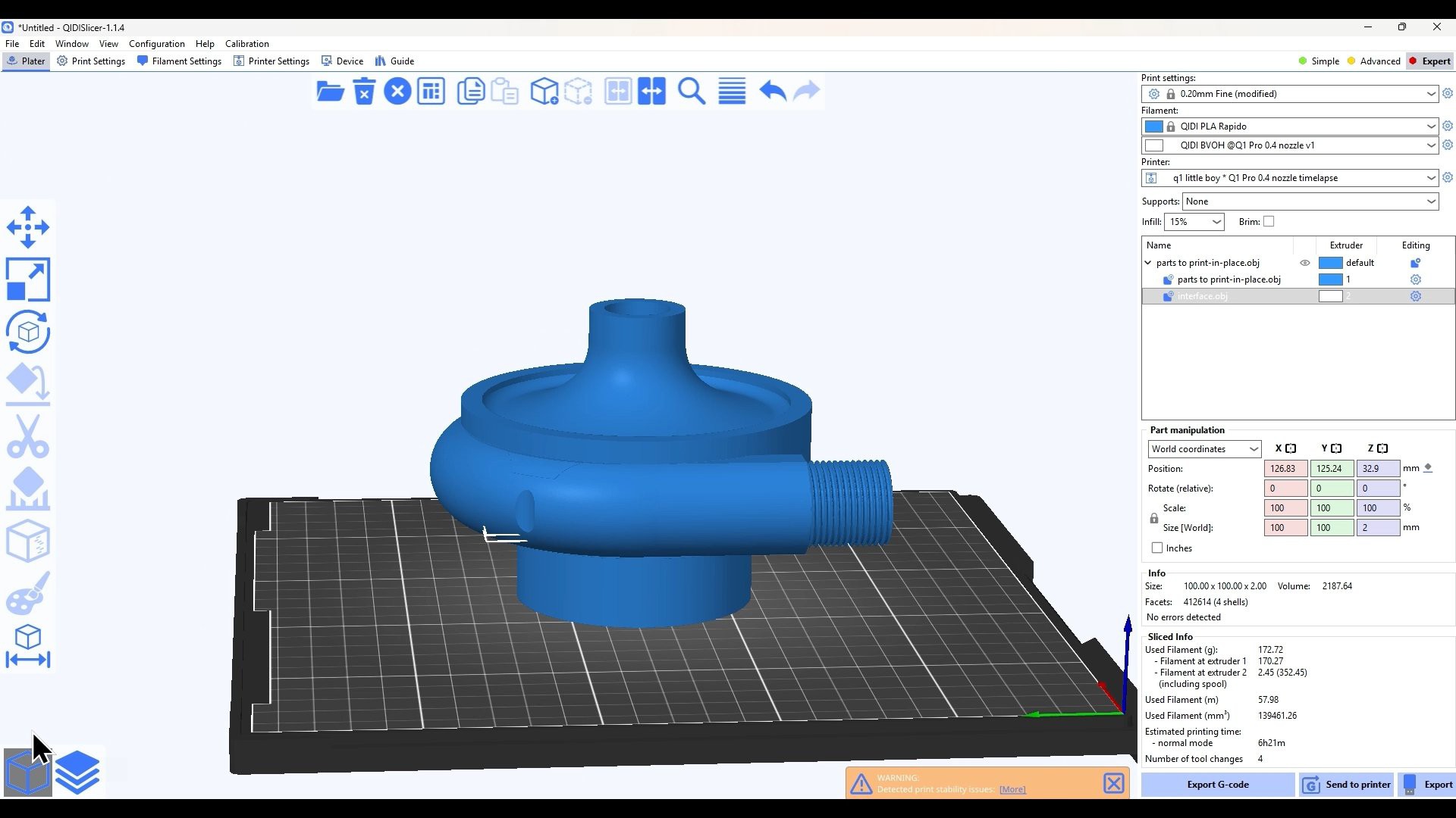 parts-to-print-in-placemodel. - Assign Extruder 2 (your soluble material, e.g., BVOH, PVA) to the