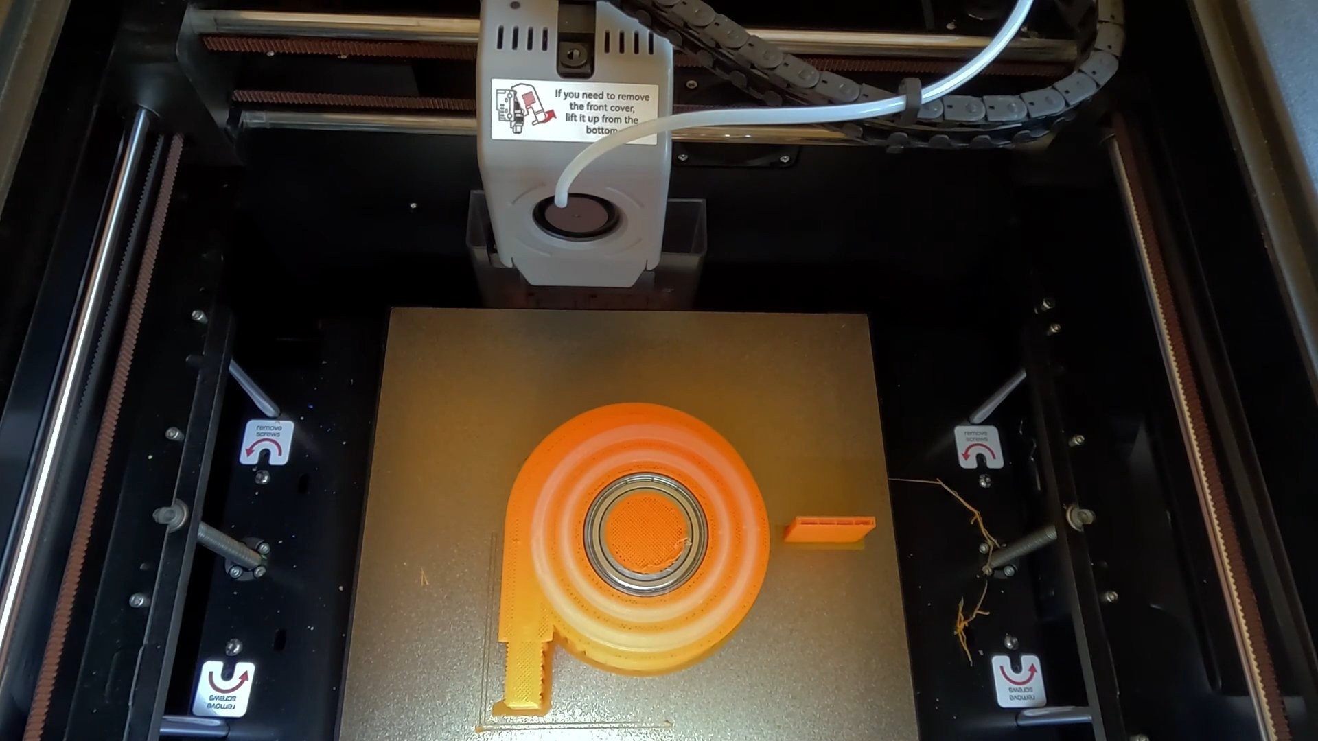During the print installed the components—bearings, in-situ grease, and an O-ring.