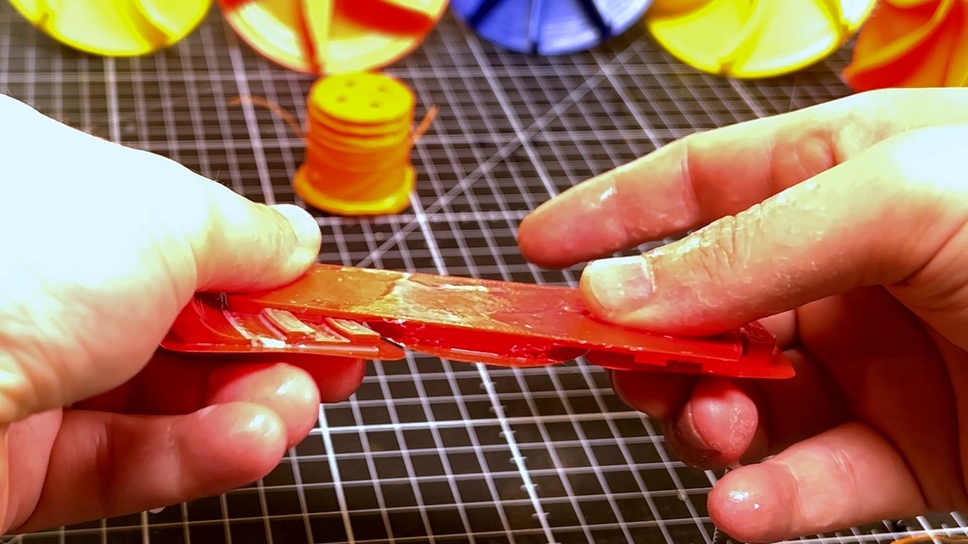 Ultimately, the best performer was a red 10-vane axial and radial design, which made it into the final print-in-place version.