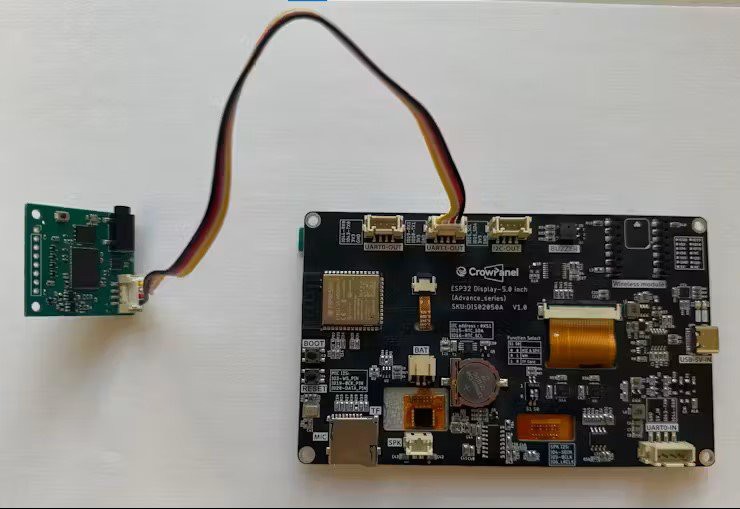 CrowPanel handles UI, SD read, mode switching, and UART transmission.