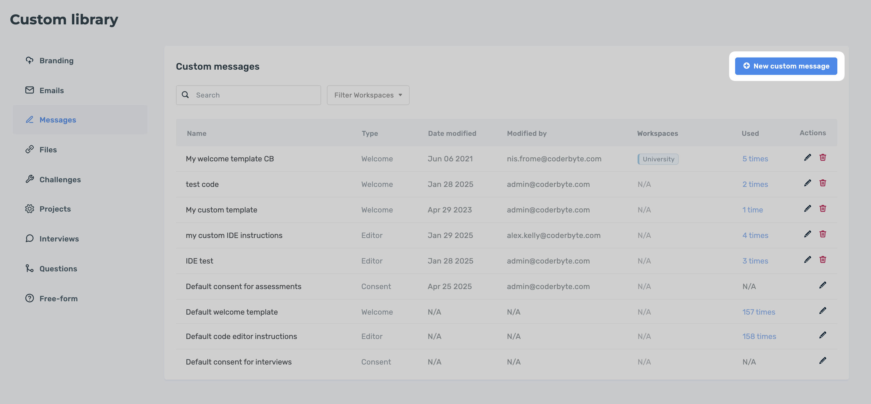 To create and manage welcome screen messages, navigate to Custom library and then to Messages.