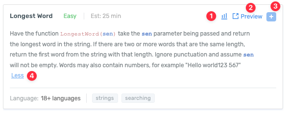 For each challenge in the library, you will see the relevant difficulty and have several capabilities: