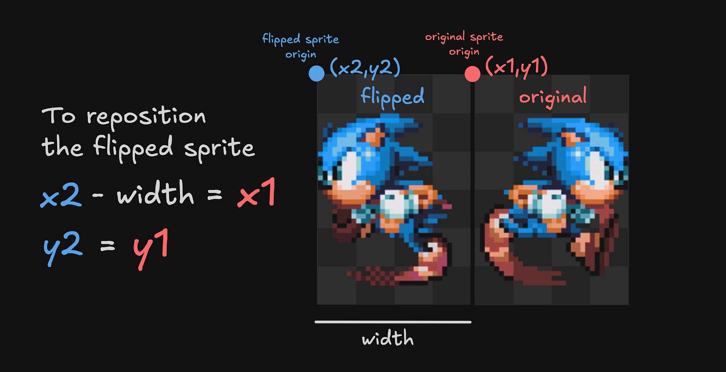 However, an issue arose! If you flipped the sprite, it would not flip in place since it would flip according to the sprite’s origin which was its top-left corner.