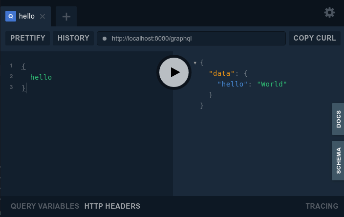 We can test out our server by going to localhost:8080/graphql and our hello