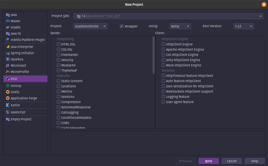 The very first thing we'll be doing is creating a new IntelliJ project and use the ktor template.