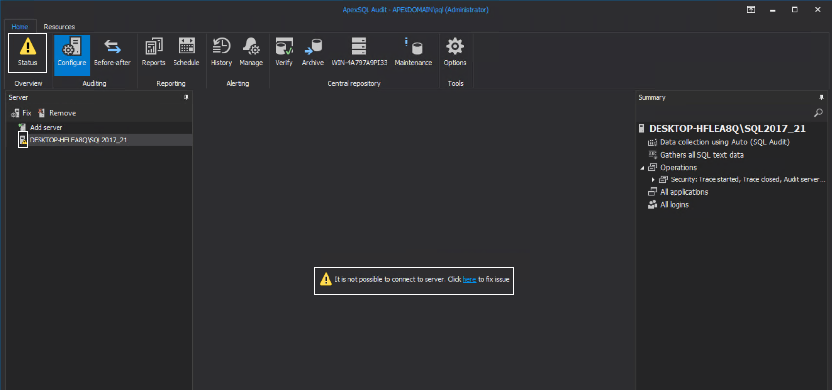 This article intends to show what connectivity issues could be encountered during ApexSQL Audit setup due to a lack of security prerequisites and how to resolve them.