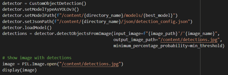 Finally, the most fun part of our process is testing. Once we are done training our model, we can test it using images from our test set or even run it on videos. Testing the model with imageAI takes 6 lines of code with 2 additional lines to display the image and its corresponding bounding boxes.