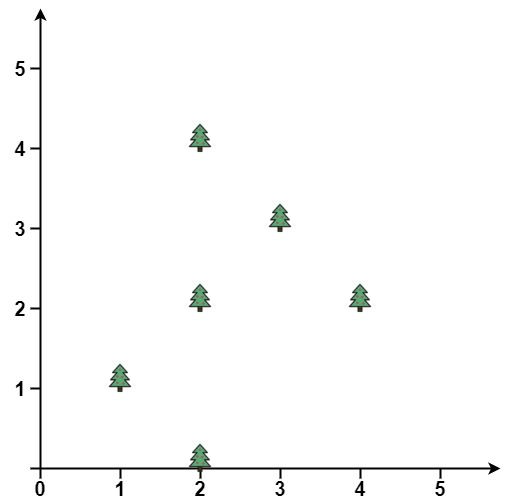 1 <= trees.length <= 3000trees[i].length == 20 <= xi, yi <= 100- All the given positions are unique.