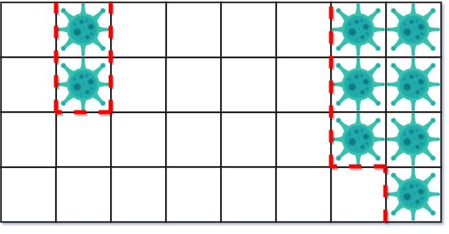 .- There is always a contiguous viral region throughout the described process that will infect strictly more uncontaminated squares in the next round.