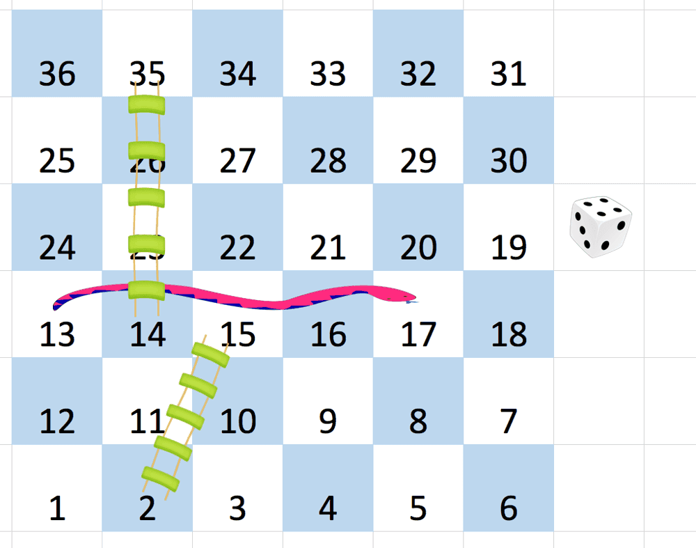 nextwith a label in the range[curr + 1, min(curr + 6, n2)].- This choice simulates the result of a standard 6-sided die roll: i.e., there are always at most 6 destinations, regardless of the size of the board.