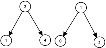 Input: root1 = [2,1,4], root2 = [1,0,3], target = 5 Output: true Explanation: 2 and 3 sum up to 5.