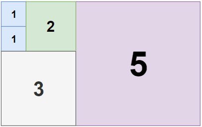 - Otherwise, we enumerate the maximum square side length $w$ that the current position $(i, j)$ can fill, and fill all positions from $(i, j)$ to $(i + w - 1, j + w - 1)$, then recurse to the next position $(i, j + w)$. When backtracking, we need to clear all positions from $(i, j)$ to $(i + w - 1, j + w - 1)$.