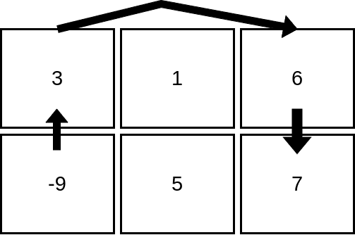 Input: mat = [[3,1,6],[-9,5,7]] Output: 4 Explanation: The image above shows how we can visit 4 cells starting from row 2, column 1. It can be shown that we cannot visit more than 4 cells no matter where we start from, so the answer is 4.