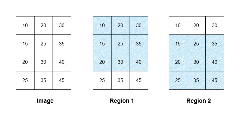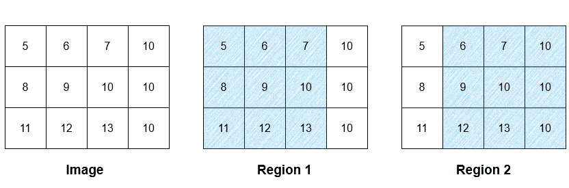 All pixels in a region belong to that region, note that a pixel can belong to multiple regions.