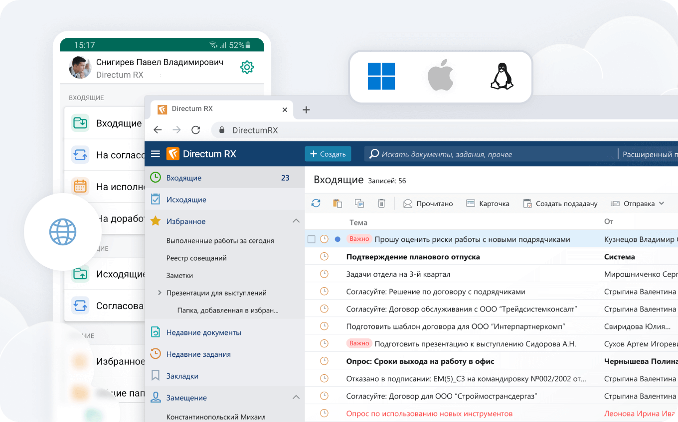 СЭД Directum Lite поможет организовать электронный документооборот и избавит от хаоса в рабочих задачах, договорах и счетах на оплату, делопроизводстве, совещаниях, проектах.