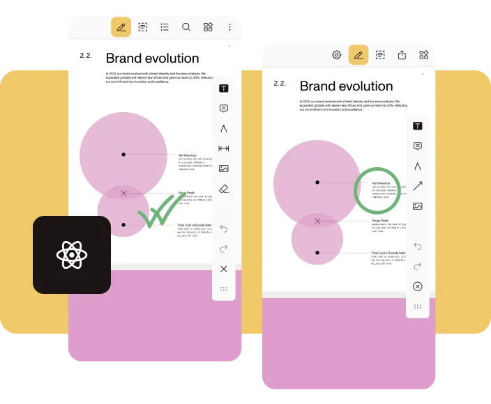 Nutrient React Native SDK provides a unified solution for viewing, annotating, and editing PDFs on both Android and iOS. With a single SDK, developers can seamlessly integrate powerful PDF functionality into any React Native application, ensuring a consistent experience across platforms.