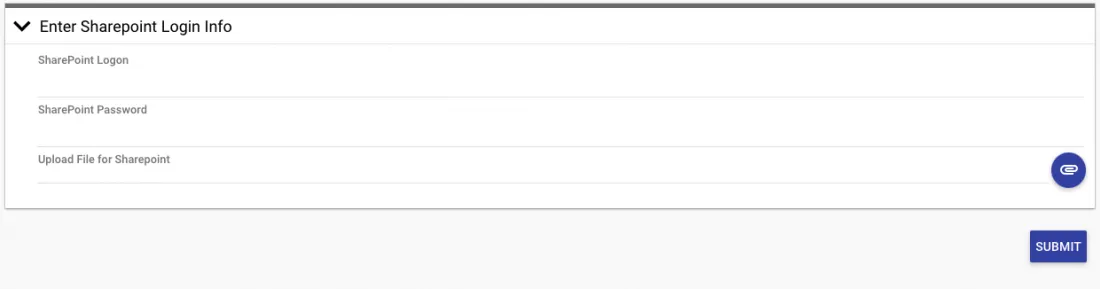 Now that your Lambda Tasks is fully configured you can run a request. Enter your SharePoint credentials and upload your file to the initial form and then submit.