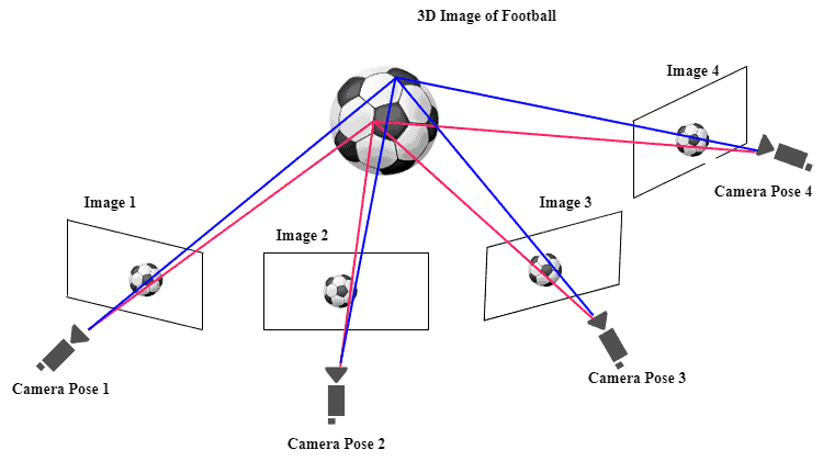 - Approximation: Due to noise, they rarely intersect perfectly, so we compute the 3D point that best fits all rays (least-squares solution).