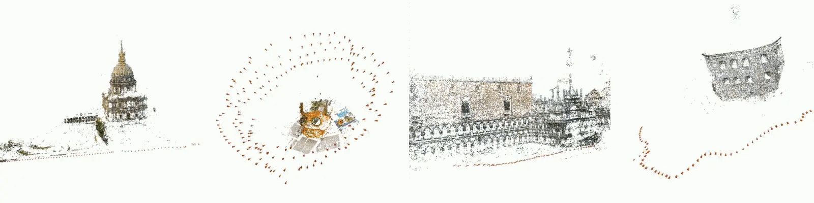 - The Optimization: This forms a large non-linear least-squares problem. Solving it sharpens the camera trajectory, pulls 3D points into more accurate locations, and suppresses unstable or inconsistent points, resulting in a clean and coherent reconstruction.